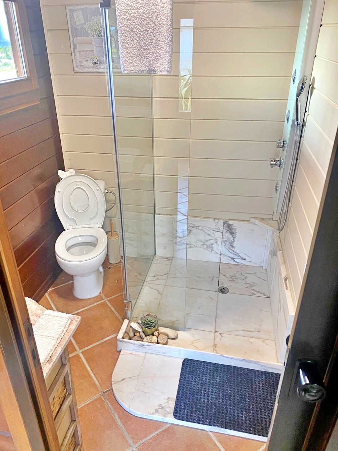 One of the highlights is the large private terrace, perfect for enjoying your morning coffee, dining outdoors, or relaxing in the evening.