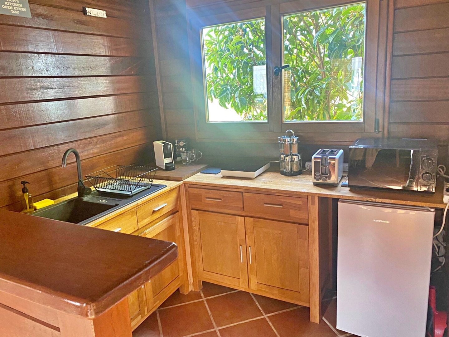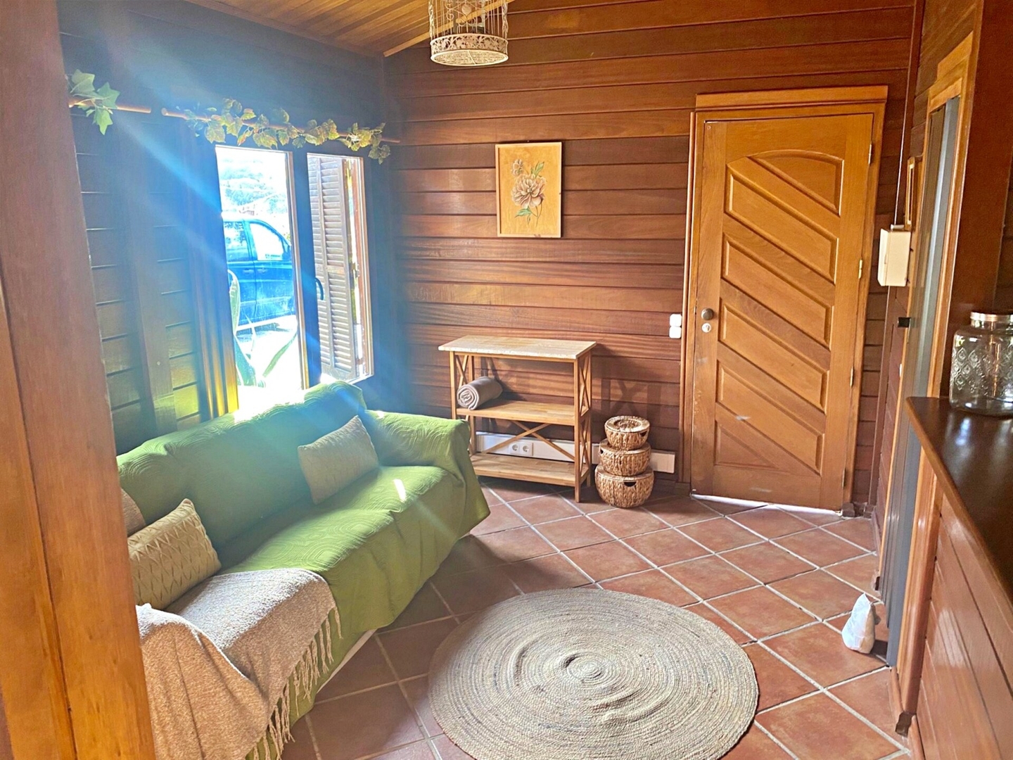 The house features one bedroom with one double bed and one single bed, making it ideal for couples, small families, or friends. Inside, you’ll find a separate kitchen, a comfortable living room, and a private shower room, all designed for a practical and comfortable stay.