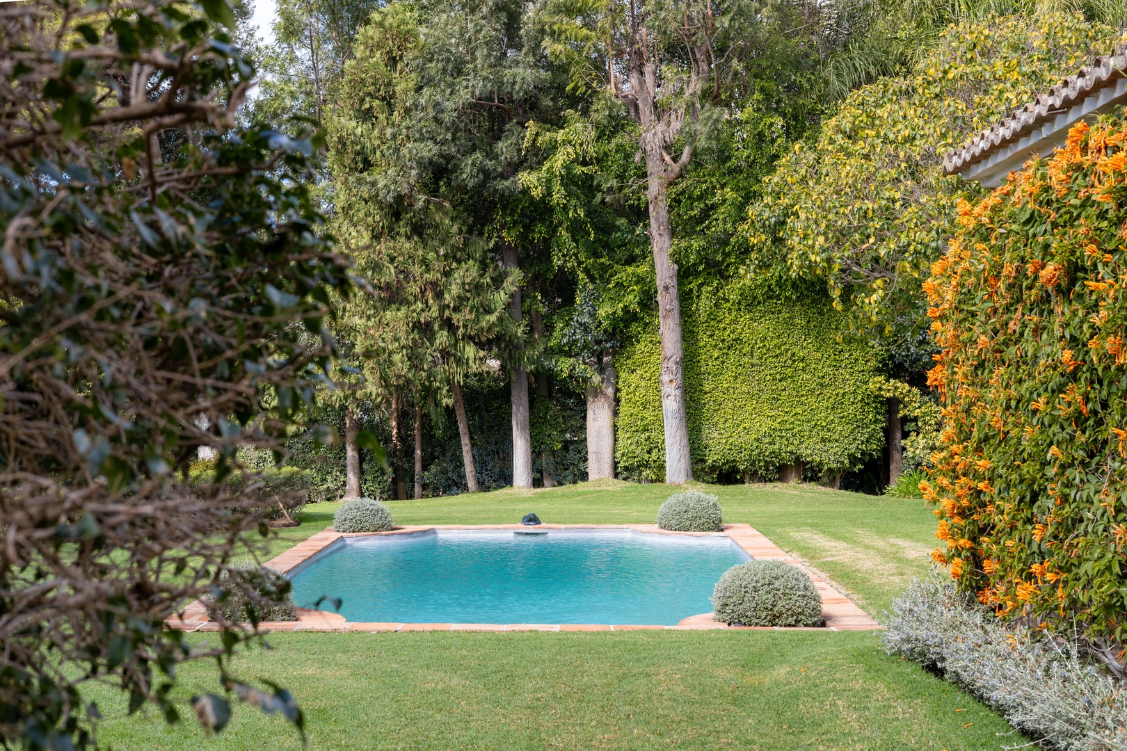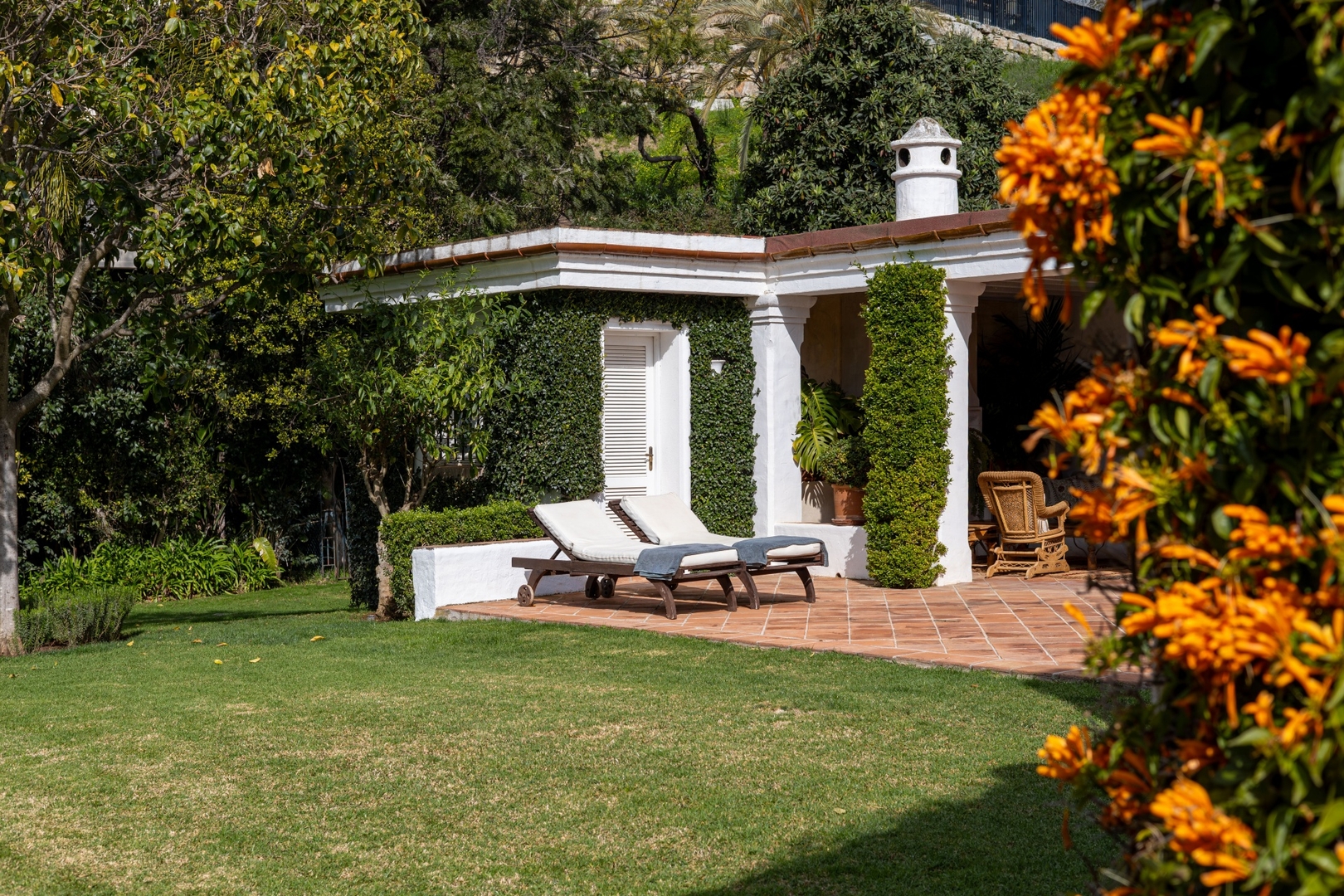El Almendral Villa is a charming Andalusian estate located in the exclusive Marbella Hill Club on the slopes of Sierra Blanca, offering beautiful views of La Concha mountain. Surrounded by a 7,000 m² private garden, the villa provides privacy, tranquillity, and classic Marbella charm. The property features 4 bedrooms with en-suite bathrooms, accommodating up to 7 guests. Inside, you will find a spacious living room with a fireplace, a dining area, and a fully equipped kitchen, while all bedrooms have direct access to the garden. Outside, guests can enjoy a large private swimming pool, shaded terraces, and outdoor dining areas. Staff cleaning service and breakfast preparation are included, ensuring a comfortable and relaxing stay.